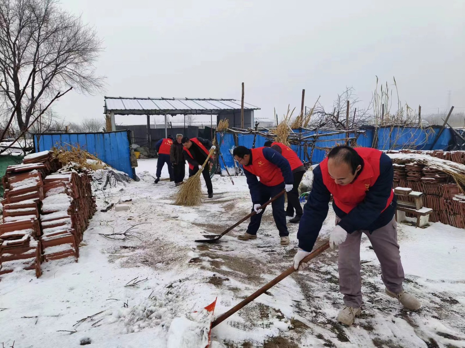 一大早,支部書記胡景青同志帶領(lǐng)黨員干部,拿著掃帚鐵鍬等工具趕往居民區(qū),為沒有勞動(dòng)能力的孤寡老人清掃門前積雪。掃雪現(xiàn)場(chǎng),大家發(fā)揚(yáng)團(tuán)結(jié)協(xié)作,不畏嚴(yán)寒的精神,在刺骨的風(fēng)雪里,吹響了一鼓掃雪除冰,錘煉黨性集結(jié)號(hào)。黨員干部手握掃帚、鐵鍬,你鏟我掃,相互配合,熱鬧忙碌的氛圍驅(qū)散了雪天的寒冷。經(jīng)過兩個(gè)多小時(shí)的勞動(dòng),房前屋后的積雪被掃得干干凈凈。為孤寡老人門前鏟出了一條暖心安全道路,贏得了社區(qū)居民的一致好評(píng)。